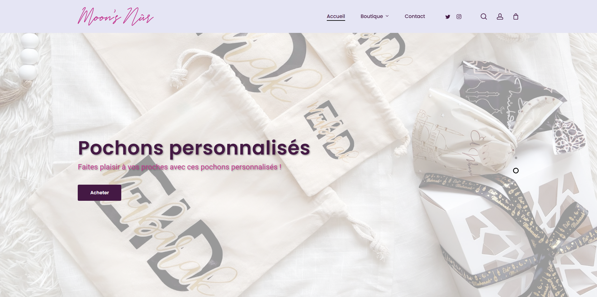 Moon’s Nûr est une boutique en ligne dédiée à la création et à la vente d’articles uniques tels que des stickers, marque-pages, bijoux et autres accessoires inspirés par l’esthétique et la culture islamique. Le site met en avant un univers qui allie modernité, élégance et spiritualité, afin de proposer des produits qui embellissent le quotidien tout en portant une signification particulière. L’objectif de Moon’s Nûr est d’offrir aux visiteurs une expérience chaleureuse et inspirante, à travers des créations qui mêlent beauté visuelle et symbolique.